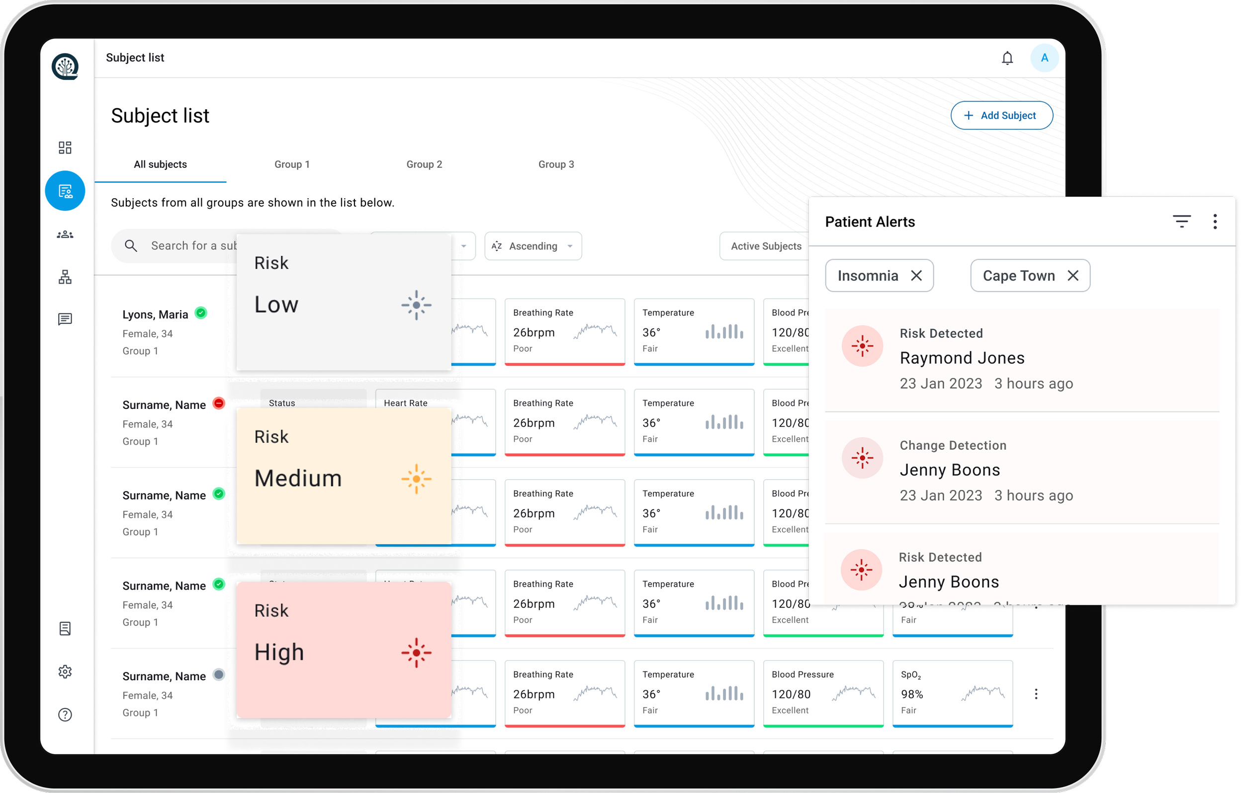 Clear subject list → patient deep dive hierarchy